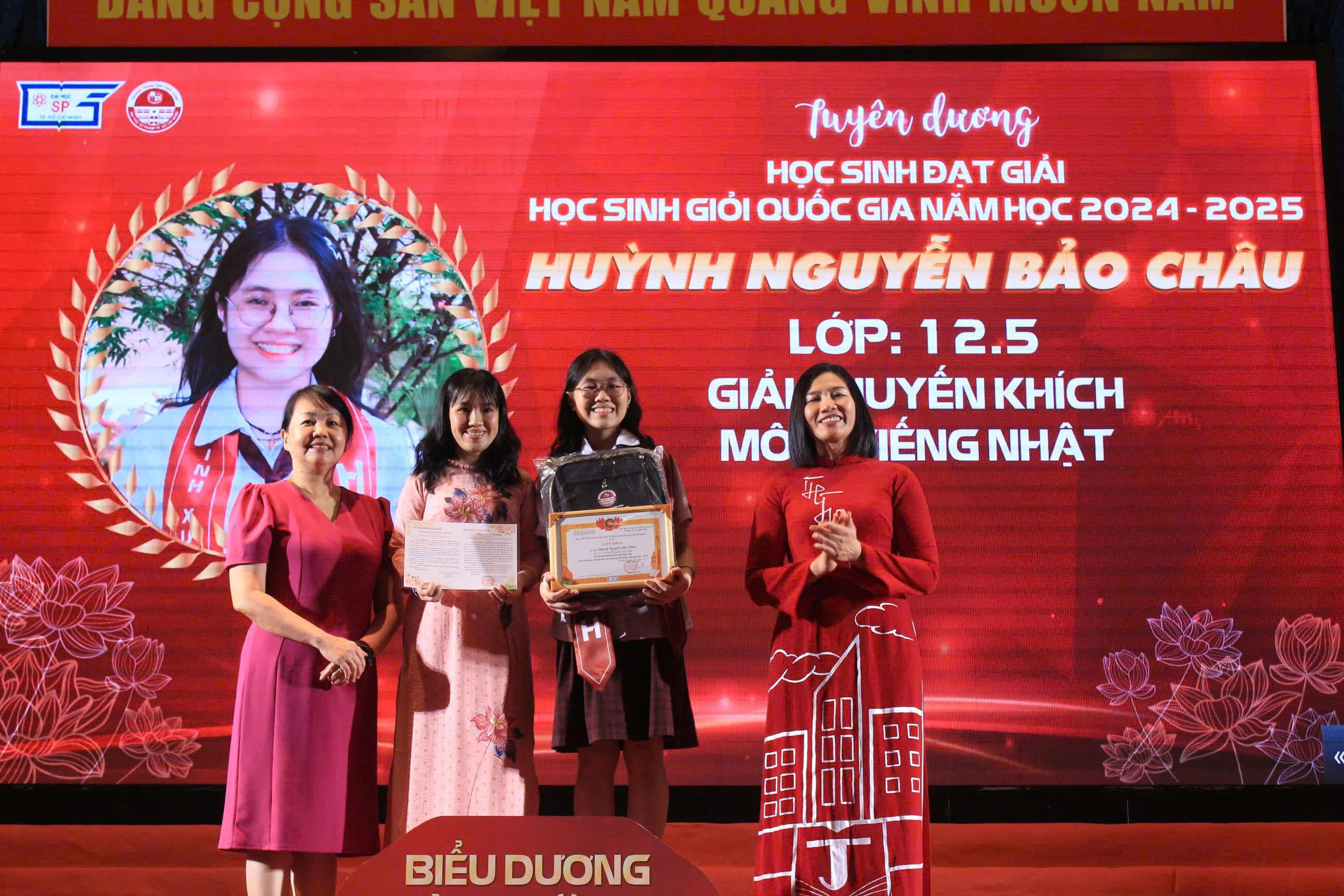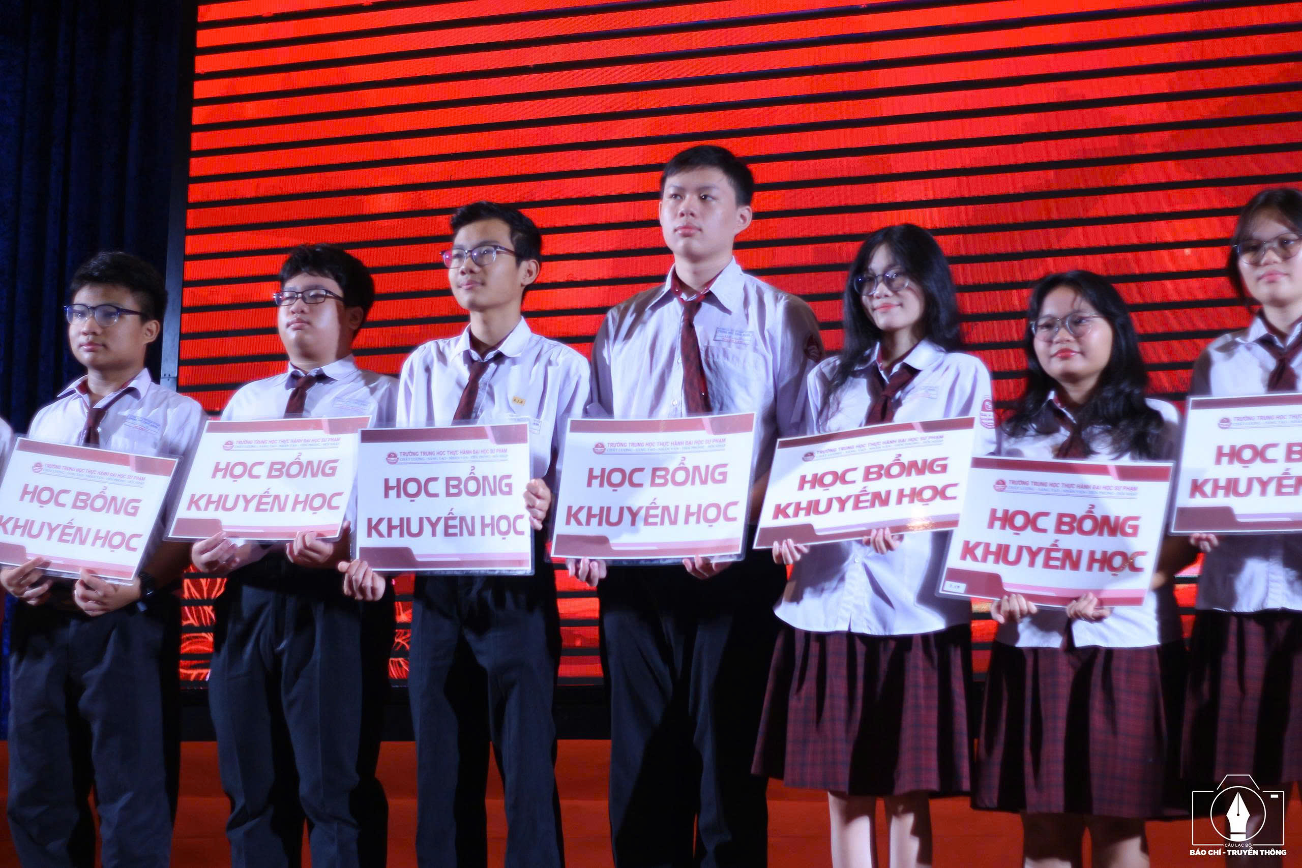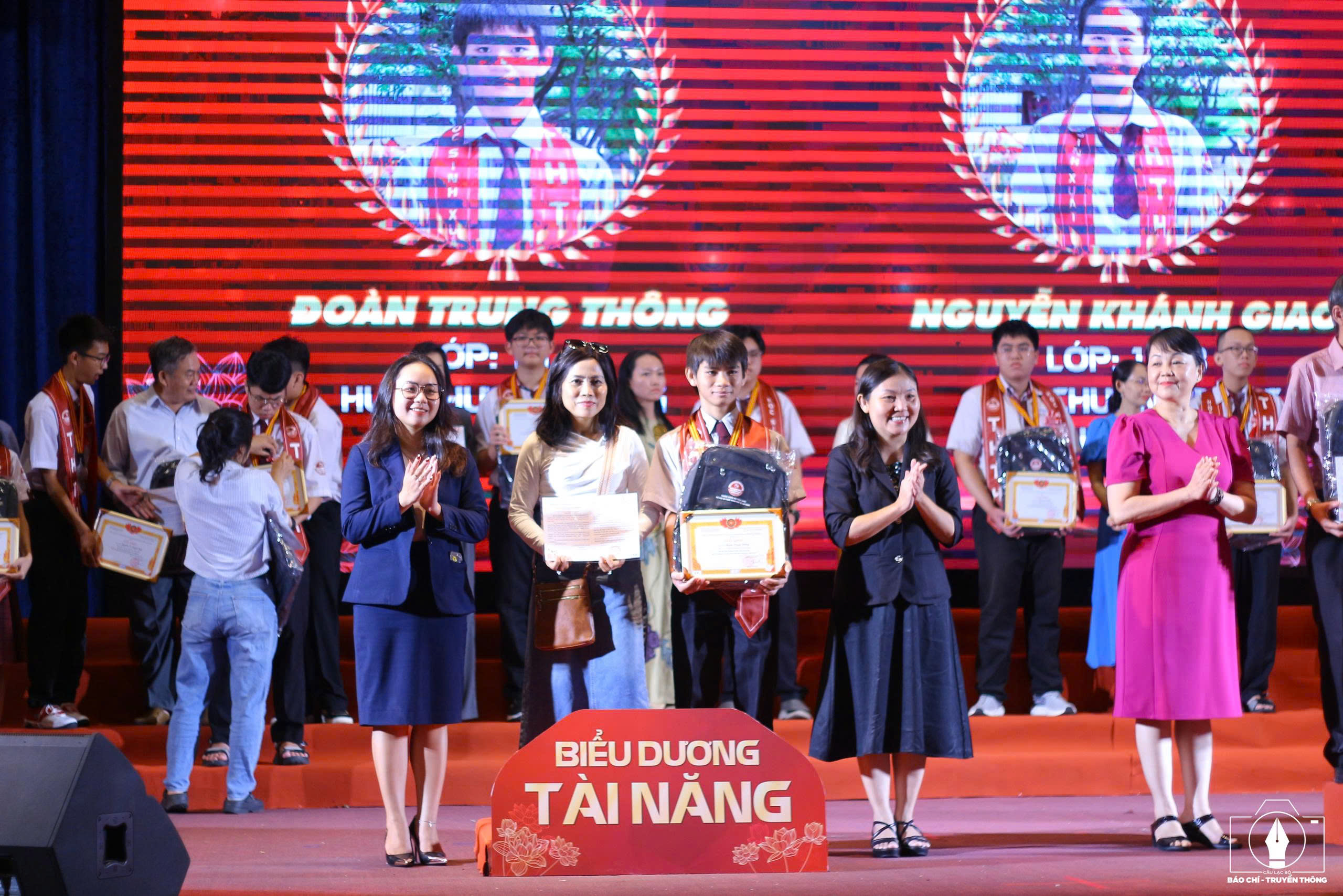 Cũng trong dịp này, Nhà trường đã thực hiện nghi thức tuyên dương, khen thưởng và gửi thư chúc mừng đến cán bộ giáo viên, cha mẹ học sinh cùng các học sinh đạt thành tích xuất sắc trong năm học vừa qua, từ các cuộc thi học thuật, phong trào đến thể dục thể thao cấp thành phố, quốc gia.