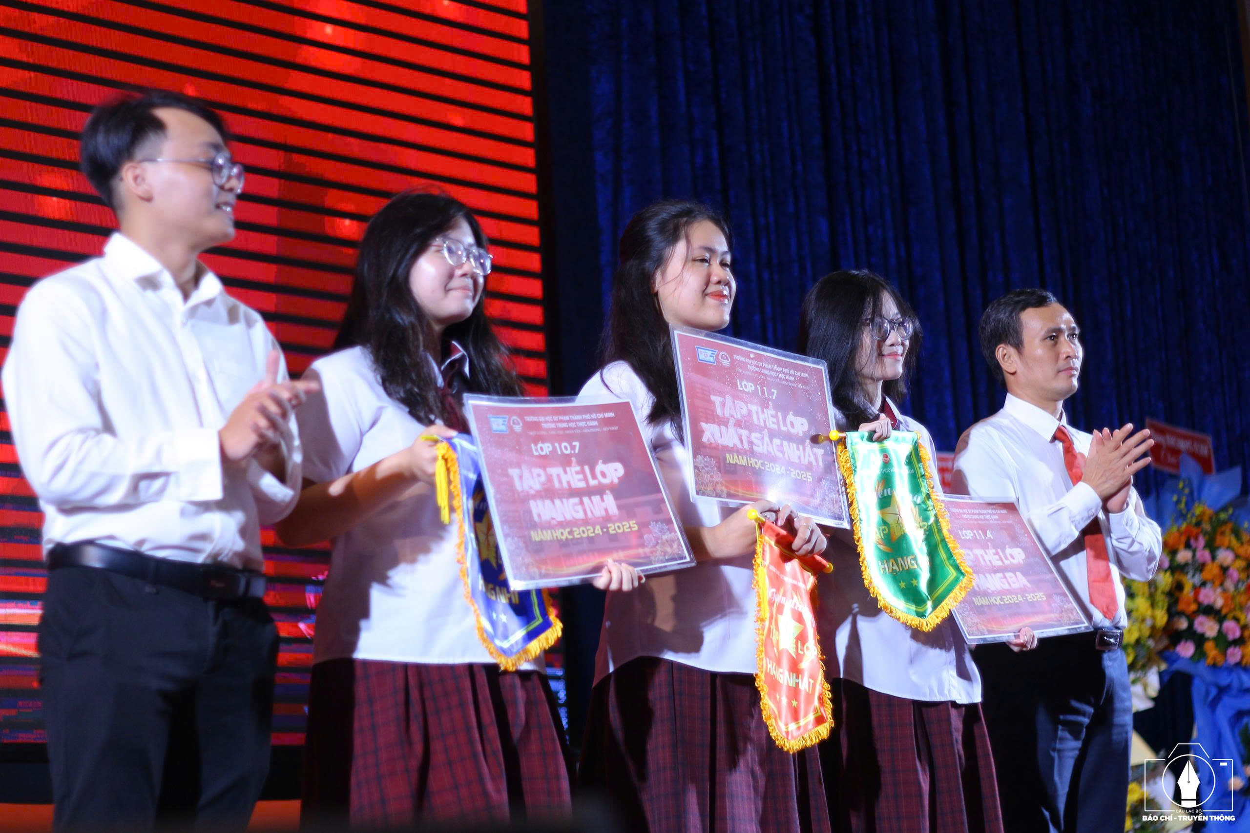 Nhà trường trao Cờ thi đua cho các tập thể lớp đạt thi đua Hạng Nhất - Hạng Nhì - Hạng Ba trong năm học 2024 - 2025