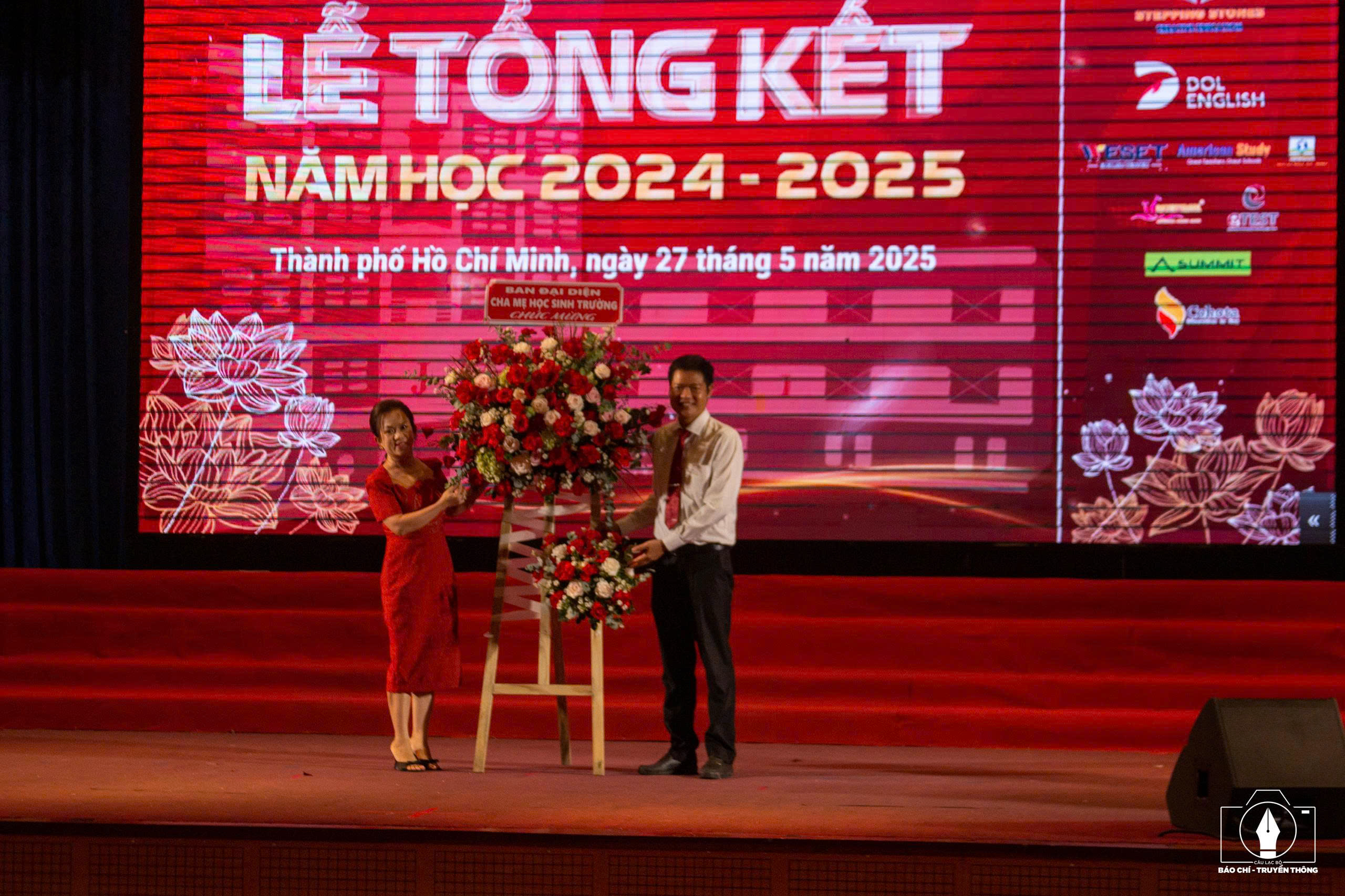 Ban đại diện Cha mẹ học sinh Trường tặng hoa chúc mừng trong lễ Tổng kết, năm học 2024 - 2025