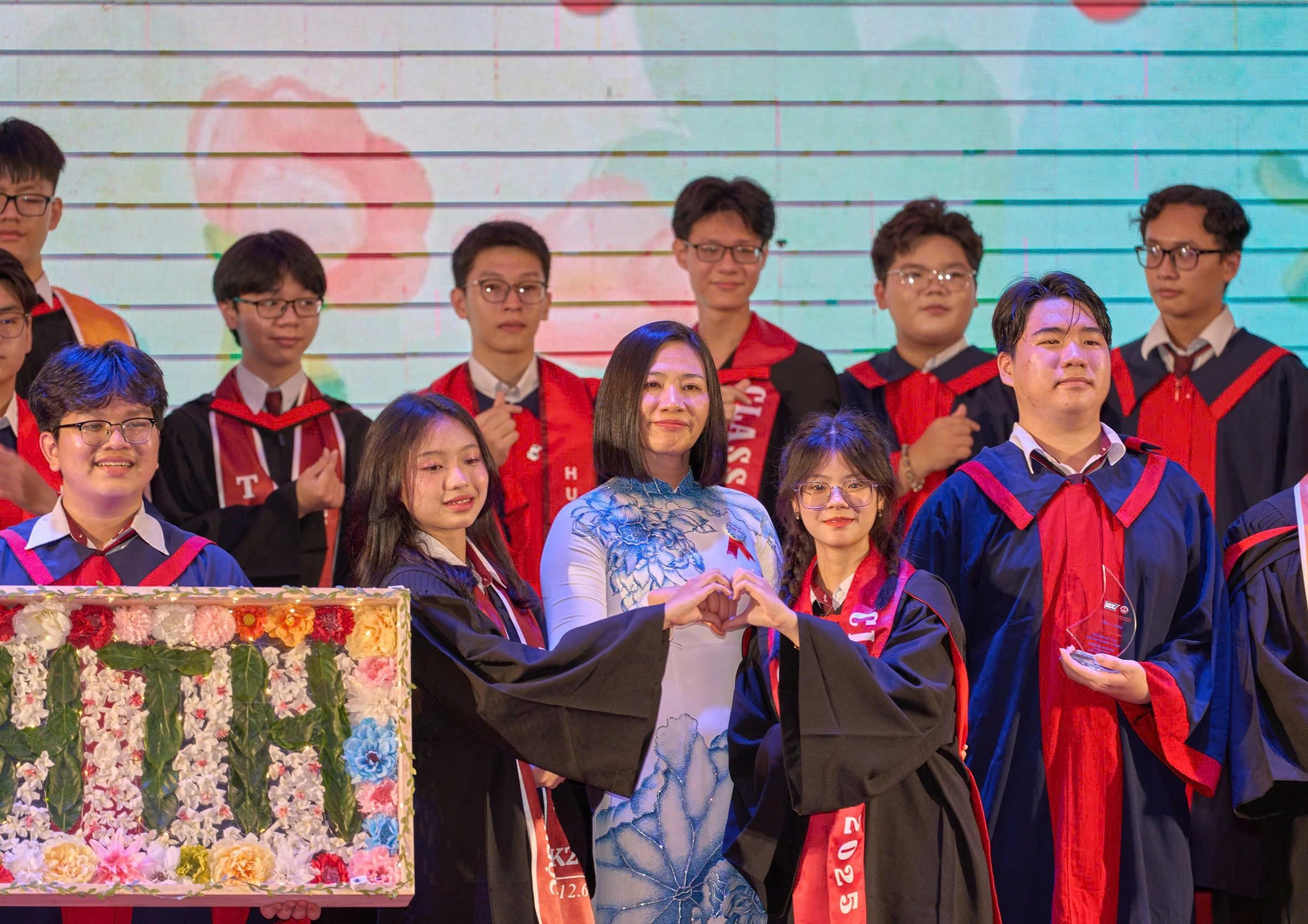 Trong không khí trang nghiêm và xúc động, những chiếc huy hiệu Tri ân được cài lên ngực áo cha mẹ và thầy cô như một lời cảm ơn gửi đến những người đã luôn đồng hành, nuôi dưỡng và bảo vệ các em trên hành trình trưởng thành; đồng thời là niềm tin, tiếp lửa tinh thần cho các em học sinh khối 12 trong những chặng đường sắp tới.